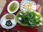 menu includes options such as grilled fresh sardines over eggplant puree, arugula salad